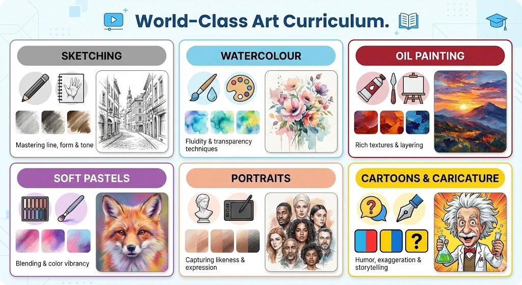 Konsult Creative Education has grown into a respected name in art education, with a presence in multiple countries and thousands of happy students. The brand is known for: