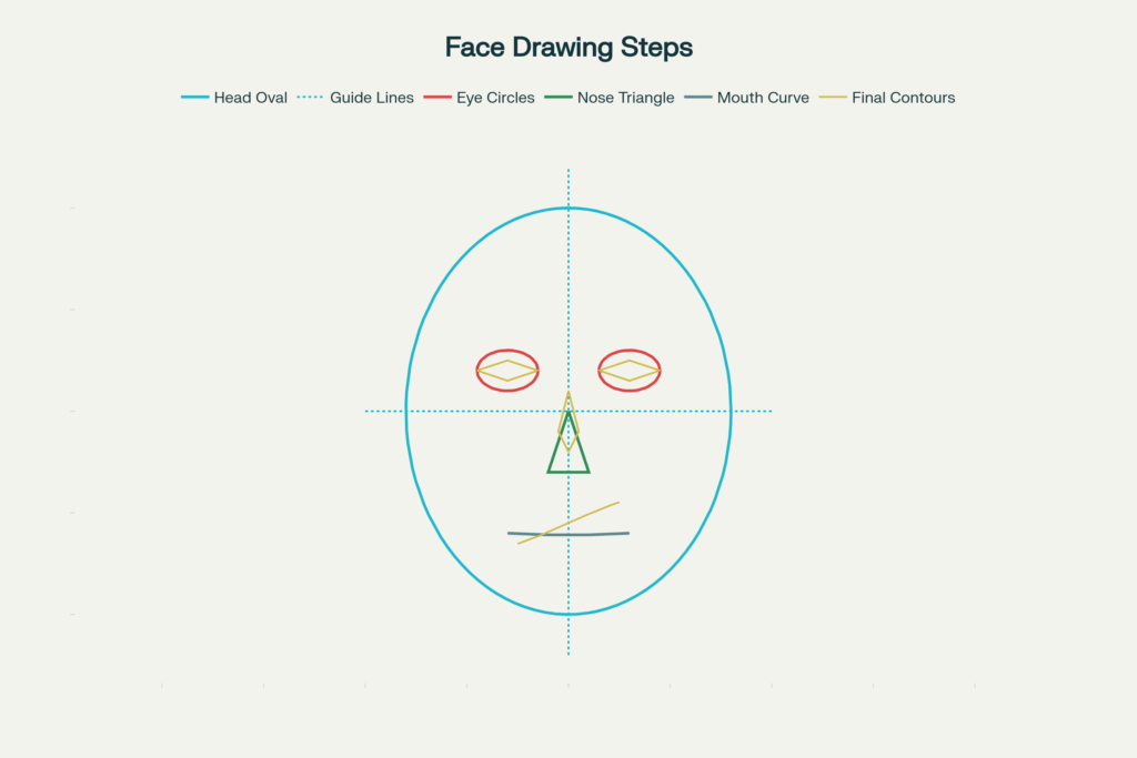 Breaking Down a Human Face Into Simple Shapes: Step-by-Step Diagram