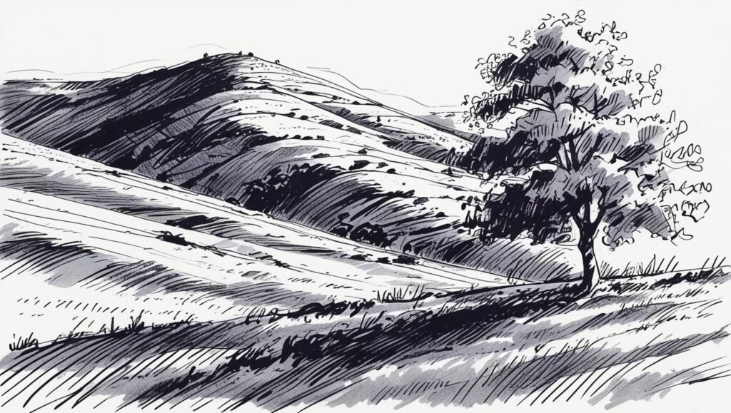 By experimenting with these methods—and developing your observation and mark-making skills—you’ll bring depth, texture, and vibrancy to any landscape drawing using the landscape hatching method.
