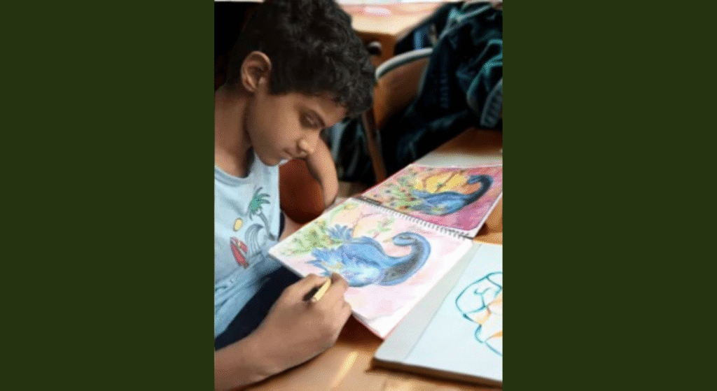 Offline Classes teach children to work with physical materials directly. They experience the texture of paper, the flow of watercolor, and the resistance of canvas. They learn to mix paints, clean brushes properly, and organize their workspace—practical skills that build independence and responsibility.